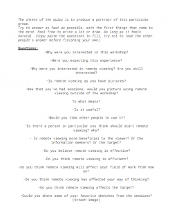 « Remote viewing » animé par Simon Ripoll-Hurier, artiste, est l’occasion d’expérimenter collectivement les potentialités – surnaturelles ou non – du remote viewing à travers sa pratique directe. Au cœur de la Silicon Valley des années 1970, la CIA mandate un groupe de scientifiques et de médiums pour former un programme de recherche dans le domaine de la parapsychologie, dans l’espoir de devancer les Russes sur le terrain des psychic weapons. Quelques années plus tard, ce programme donne naissance au « Remote Viewing ».